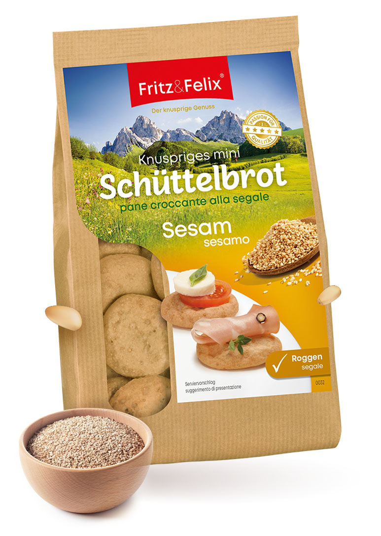 Il Mini Schüttelbrot con sesamo è fatto con farina di segale vitalizzante e semi di sesamo decorticati. Questo gli conferisce quell’inconfondibile sapore nocciolato.